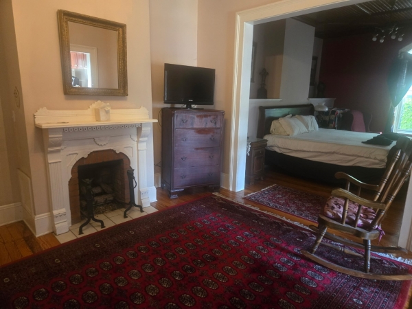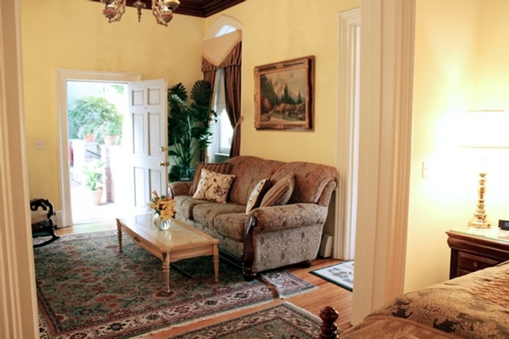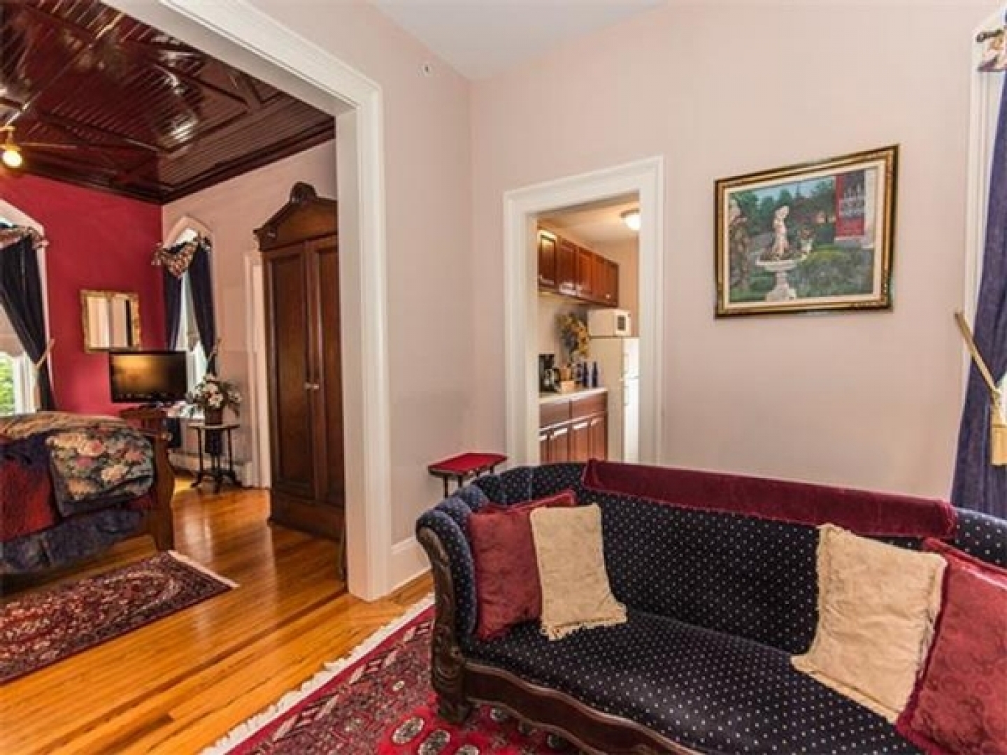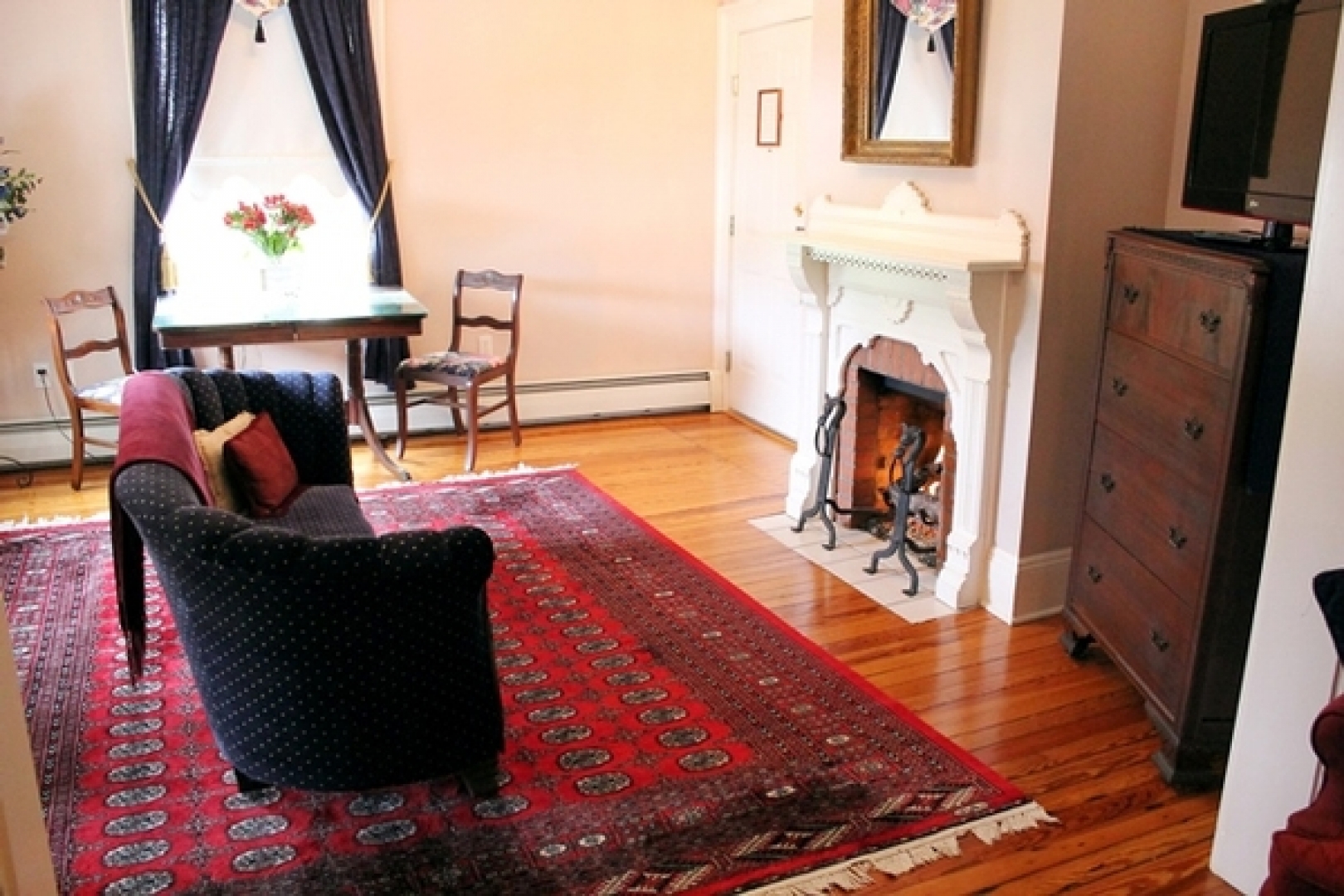 Suites include King-size, memory foam, mattresses. The living rooms are furnished with Victorian Antiques and a gas fireplace for cozy nights when there is a chill in the air. The fully stocked kitchen area provides access to a full size refrigerator, microwave, sink and appropriate cabinetry. The oversized bathroom is centered around a two person Jacuzzi tub and shower. Bathrooms are tastefully decorated and offer modern facilities in Victorian style. These suites are nonsmoking.