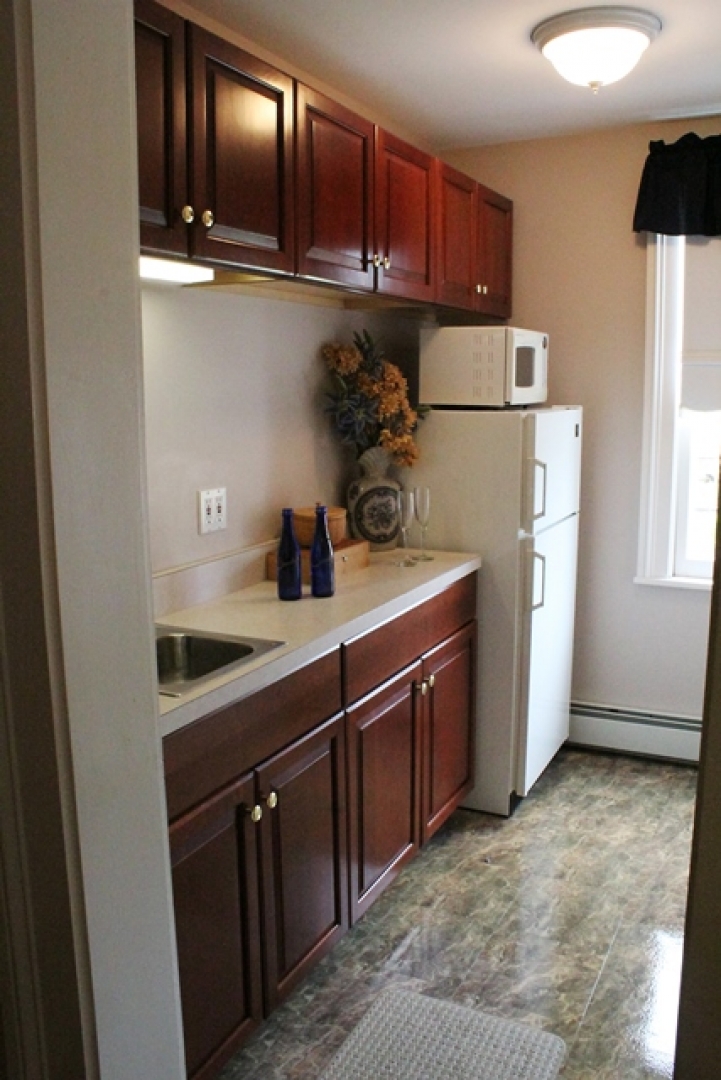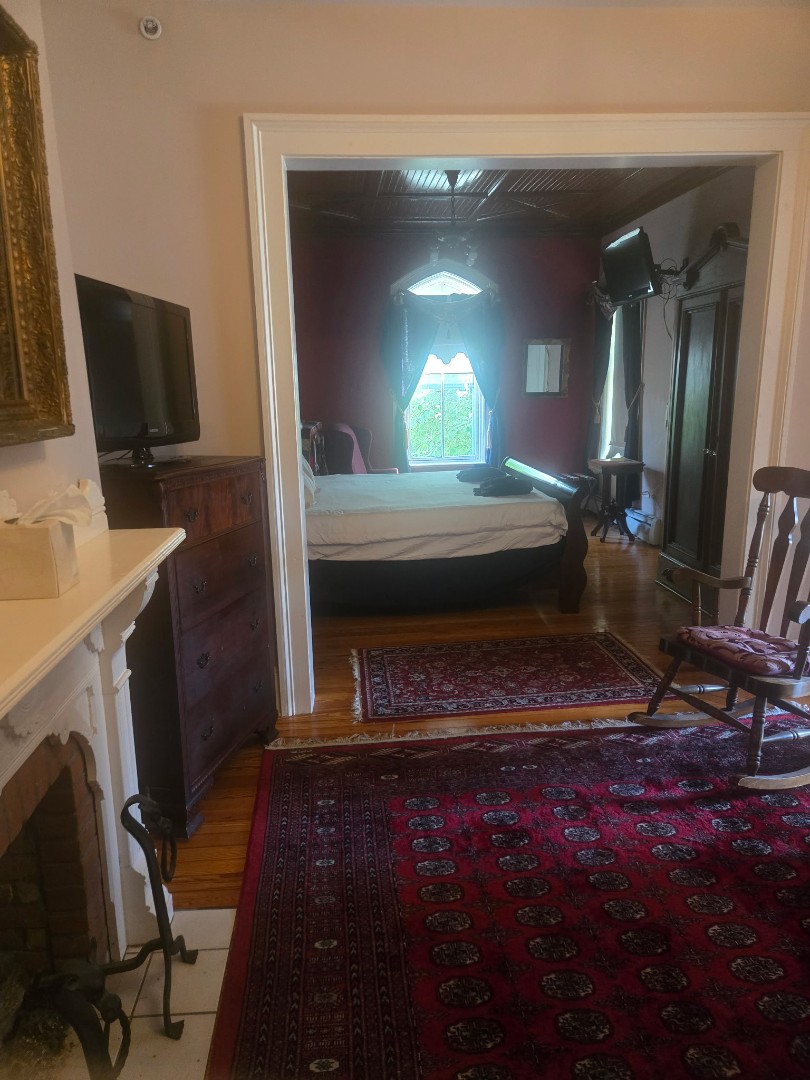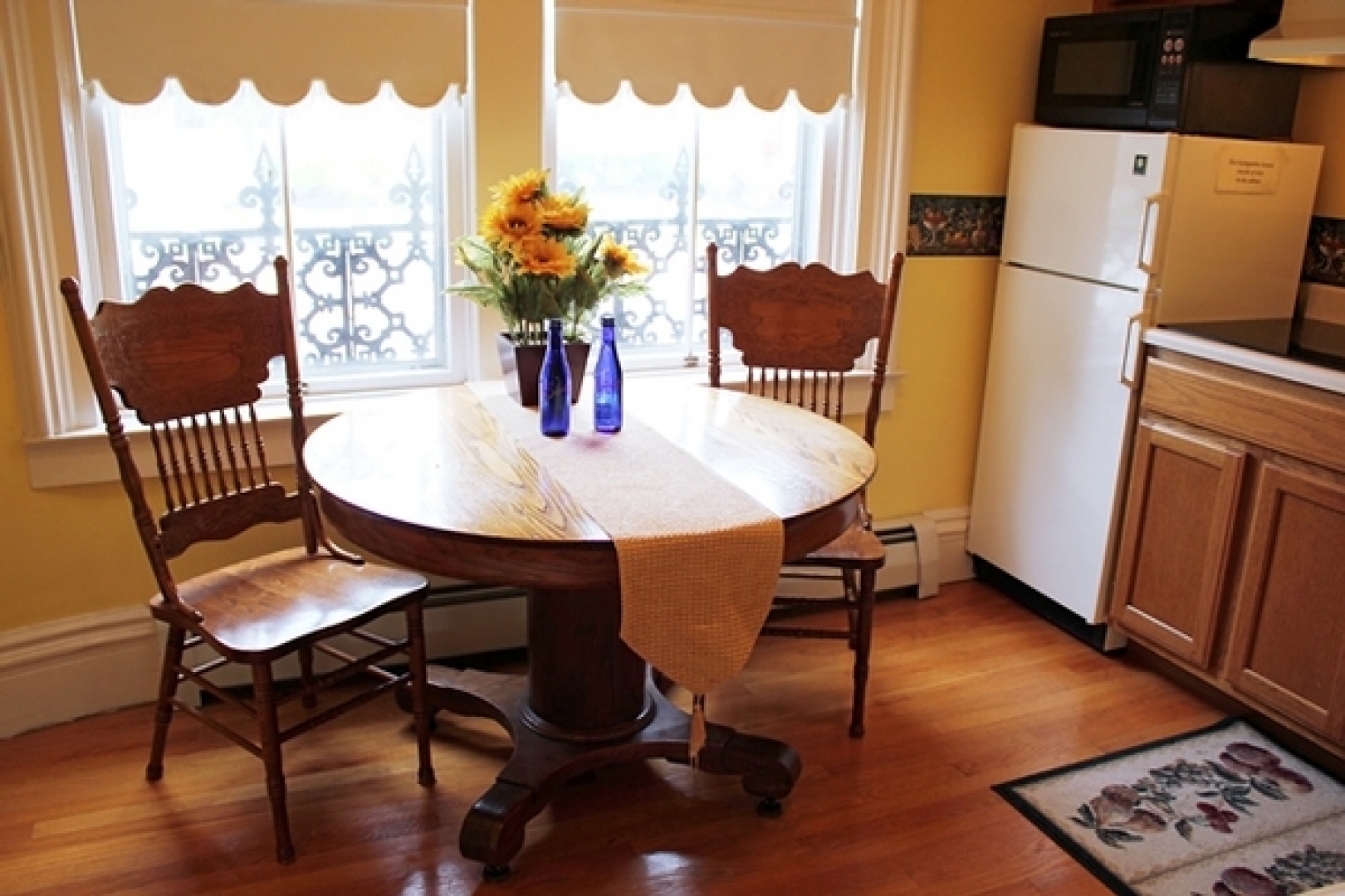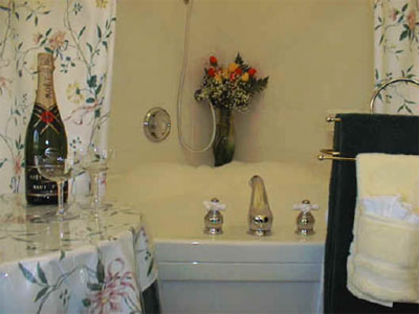 Suites include King-size, memory foam, mattresses. The living rooms are furnished with Victorian Antiques and a gas fireplace for cozy nights when there is a chill in the air. The fully stocked kitchen area provides access to a full size refrigerator, microwave, sink and appropriate cabinetry. The oversized bathroom is centered around a two person Jacuzzi tub and shower. Bathrooms are tastefully decorated and offer modern facilities in Victorian style. These suites are nonsmoking.