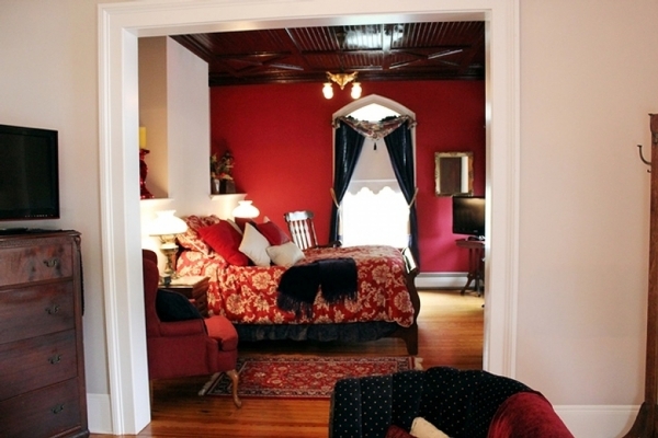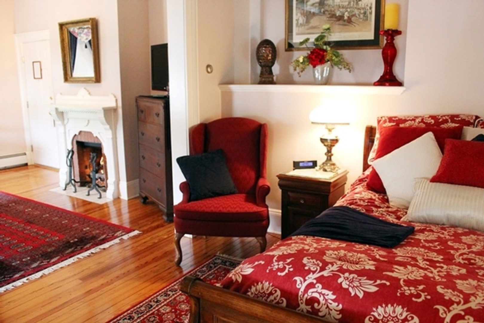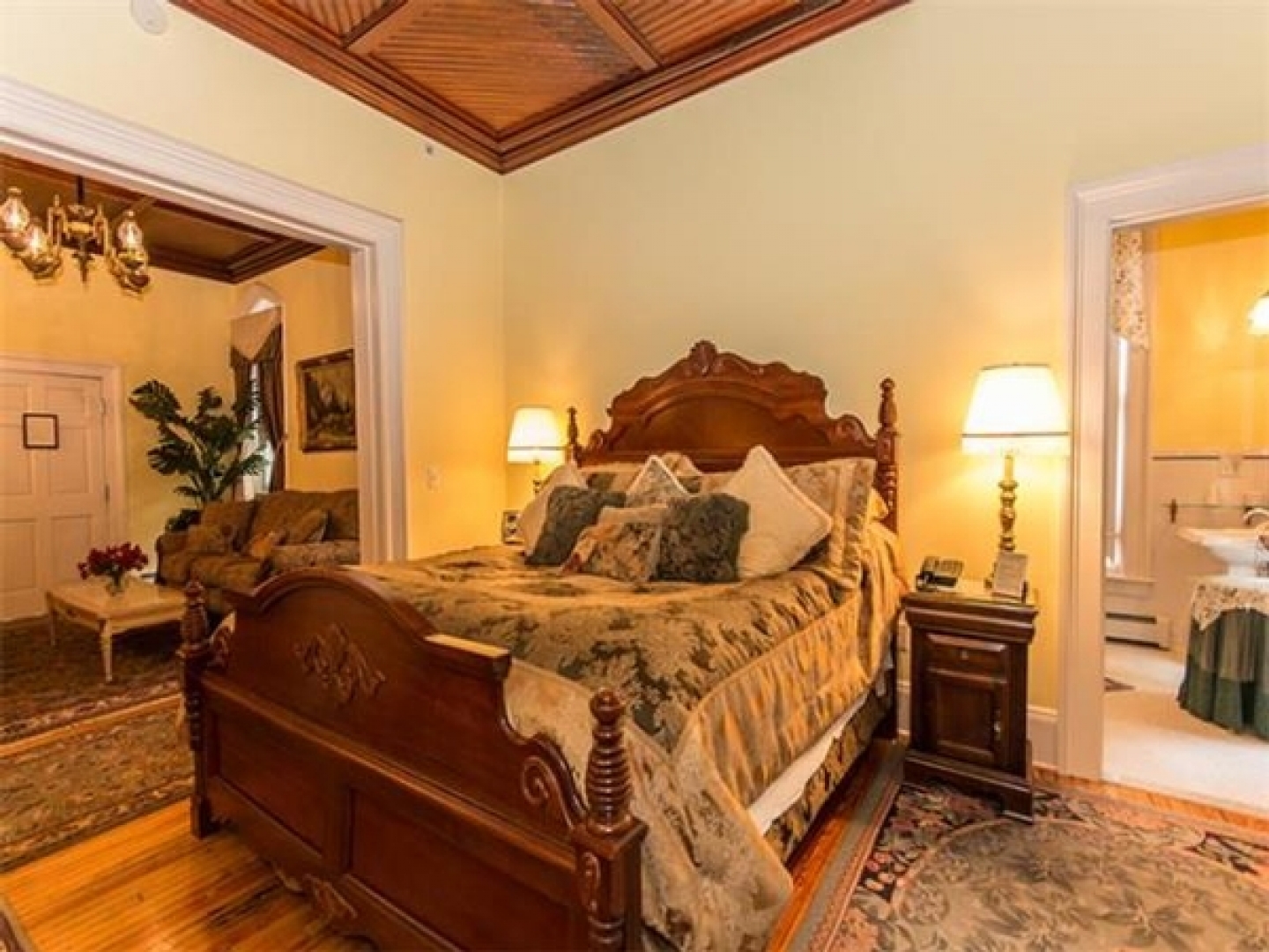 Original 1875 hand crafted wooden high ceilings are showcased in our upscale Saratoga Suites.